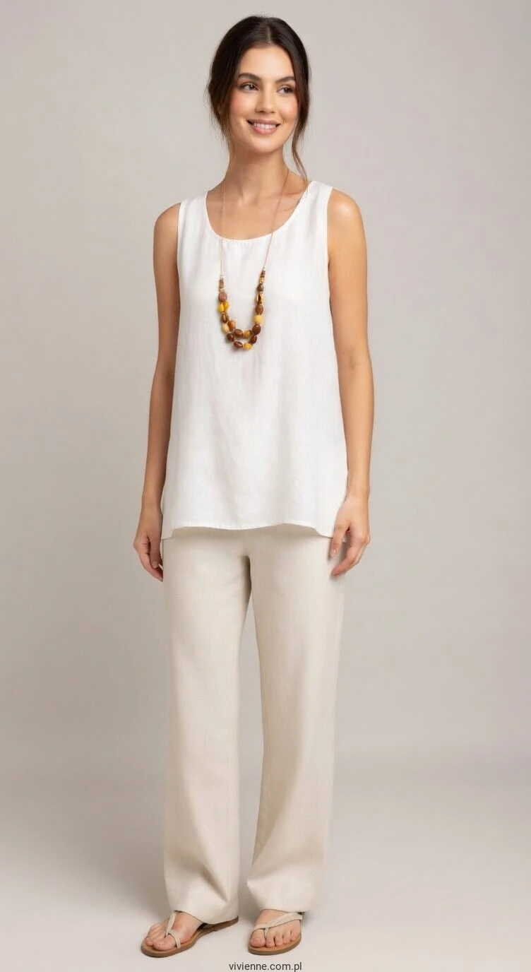Bluzka bez rękawów z naszyjnikiem w zestawie