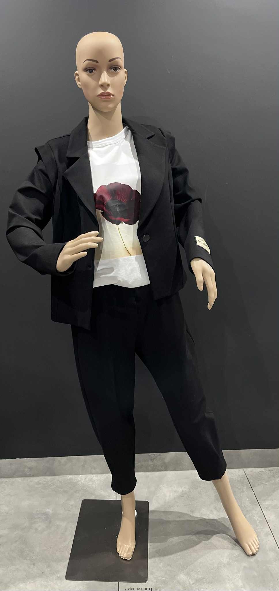 Spodnie o prostym kroju, zwężane dołem, subtelnie modelują sylwetkę i dodają całości sportowej lekkości. Garnitur łączy komfort noszenia z eleganckim, casualowym stylem, idealny do pracy, spotkań czy mniej formalnych okazji.